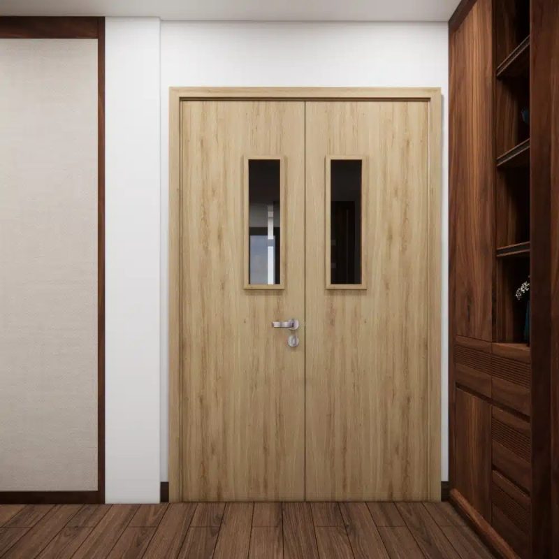 Cửa gỗ chống cháy 2 cánh: Cửa gỗ chống cháy mang đến vẻ đẹp ấm cúng, tinh tế cho không gian. Cánh cửa được làm từ gỗ công nghiệp đã xử lý chống cháy, kết hợp lõi vật liệu chịu nhiệt và phụ kiện chuyên dụng. Loại cửa này thường được lựa chọn cho biệt thự, khách sạn cao cấp, khu nghỉ dưỡng hoặc những không gian nội thất yêu cầu sự sang trọng nhưng vẫn tuân thủ quy định về an toàn cháy nổ.