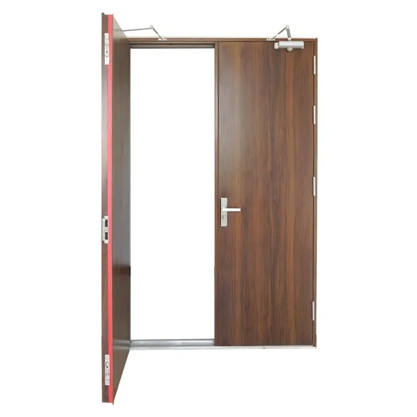 Cửa thép vân gỗ chống cháy 2 cánh: Đây là giải pháp kết hợp hoàn hảo giữa tính an toàn và thẩm mỹ. Cửa có kết cấu thép chống cháy bên trong, bề mặt phủ sơn vân gỗ cao cấp, mang lại cảm giác sang trọng như cửa gỗ tự nhiên. Dòng cửa này thường được sử dụng cho cửa chính căn hộ chung cư, văn phòng, khách sạn hoặc các công trình yêu cầu cao về mỹ quan nhưng vẫn phải đáp ứng tiêu chuẩn PCCC.