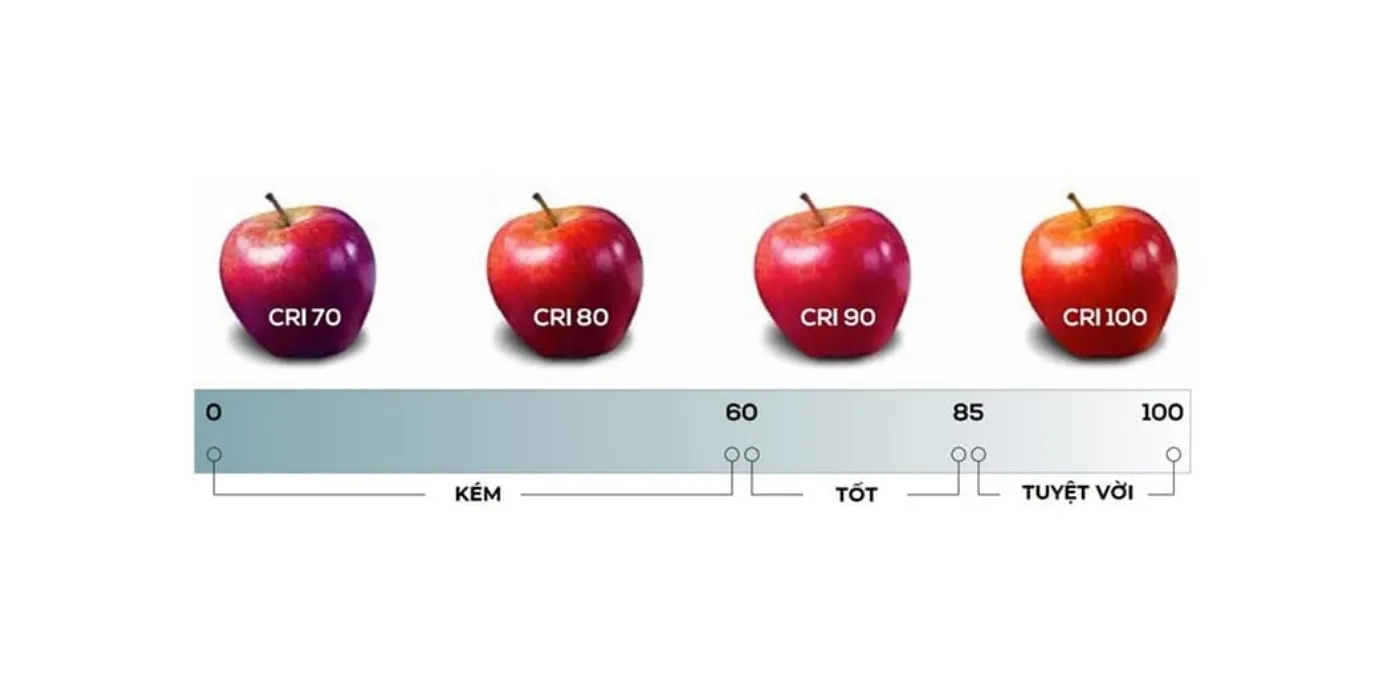 - CRI càng cao (≥80, tốt nhất ≥90) → màu sắc hiển thị càng thật